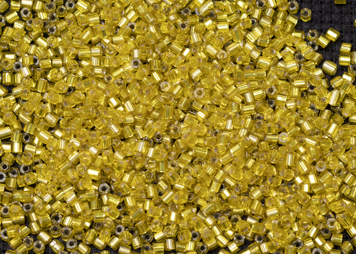 Бисер Чехия рубка 10/0 50г 87010 прозрачный желтый с серебряным прокрасом